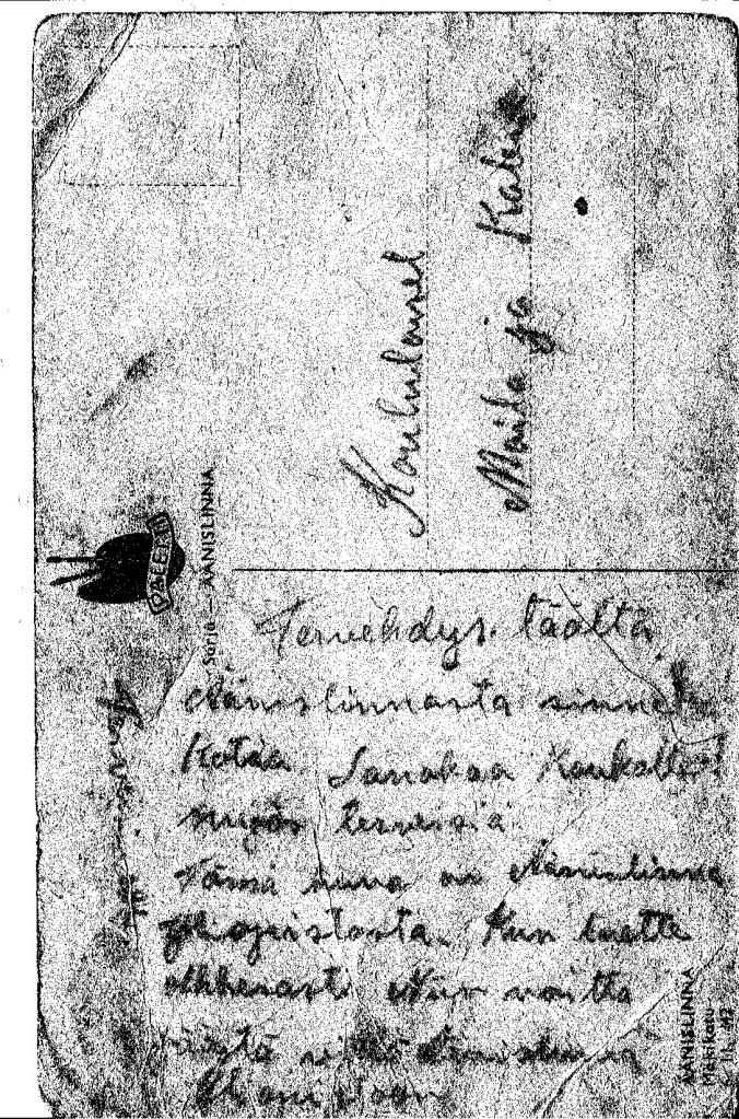 Alin kortti Mailalle ja Kaleville Äänislinnan yliopistosta